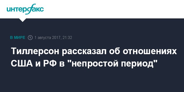 Москва. 1 августа. INTERFAX.RU - Отношения США с РФ переживают непростой период и важно понять, можно ли поддерживать их на стабильном уровне, заявил во вторник госсекретарь США Рекс Тиллерсон.