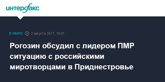 "Давайте мы с вами и начнем с темы сохранения статуса наших миротворцев и миротворческой операции, потому что вы абсолютно правильно сказали, если что и сдерживало от конфликта, не говоря уже о тех провокациях, которые имели место против Приднестровья, - это, безусловно, миротворцы, которые надежно стоят...", - сказал Рогозин на встрече с президентом непризнанной Приднестровской Молдавской республики Вадимом Красносельским в среду в Москве.