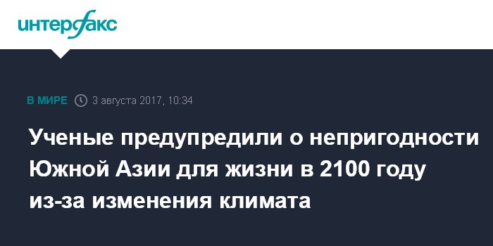 Москва. 3 августа. INTERFAX.RU - Температуры в некоторых районах Южной Азии к 2100 году достигнут непригодного для человеческой жизни уровня при текущих темпах изменения климата, показало исследование американских и китайских ученых, опубликованное в научном журнале Science Advances.