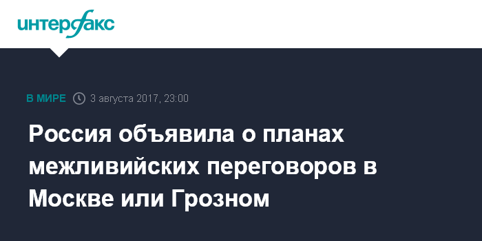 Москва. 3 августа. INTERFAX.RU - У России есть планы проведения межливийских переговоров в Москве или Грозном, заявил глава российской контактной группы по Ливии при МИД РФ и Госдуме Лев Деньгов.