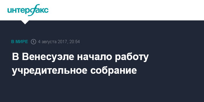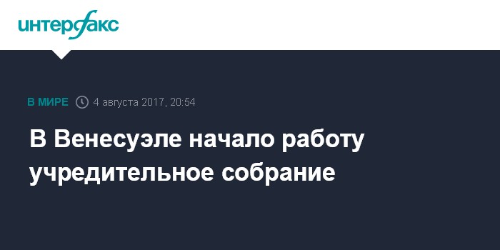 Москва. 4 августа. INTERFAX.RU - Учредительное собрание Венесуэлы, призванное разработать поправки в конституцию страны, начало свою работу, передает в пятницу информагентство EFE.