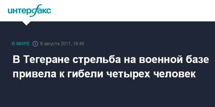 Москва. 6 августа. INTERFAX.RU - Один из иранских военнослужащих открыл огонь по своим сослуживцам на военной базе на южной окраине столицы, в результате четыре солдата погибли, восемь получили ранения, сообщают СМИ со ссылкой на заявление военного командования.