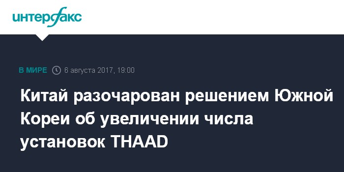 Китай разочарован решением Южной Кореи об увеличении числа установок THAAD
