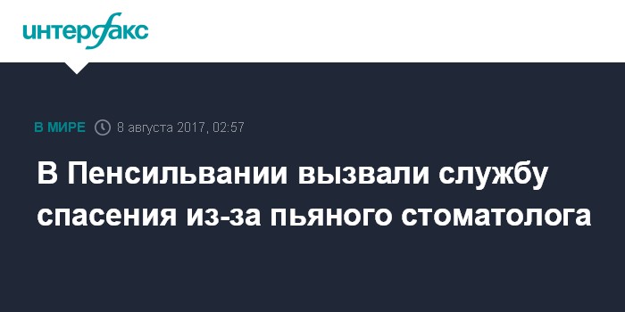 Москва. 8 августа. INTERFAX.RU - Помощник зубного врача в американском штате Пенсильвания вызвал службу спасения, когда обнаружил своего начальника пьяным, сообщило во вторник агентство Associated Press.