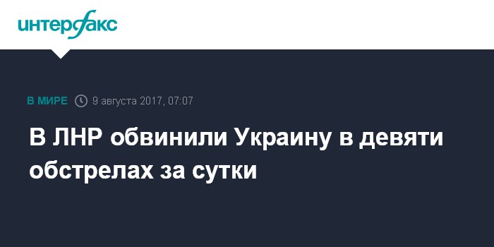 Москва. 9 августа. INTERFAX.RU - Украинские военные девять раз за прошедшие сутки обстреляли территорию самопровозглашенной Луганской народной республики (ЛНР), сообщили "Интерфаксу" в пресс-службе Народной милиции ЛНР.