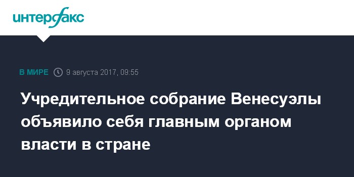 Москва. 9 августа. INTERFAX.RU - Национальное учредительное собрание Венесуэлы одобрило указ, согласно которому ни одна ветвь власти в стране не может препятствовать принятым им решениям, сообщила газета El Universal. Указ был принят накануне, его подробности пока не сообщаются.