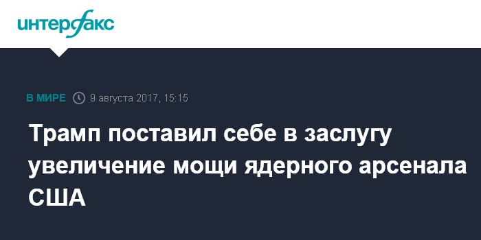 Москва. 9 августа. INTERFAX.RU - Президент США Дональд Трамп заявил об успехах в модернизации ядерного арсенала страны.