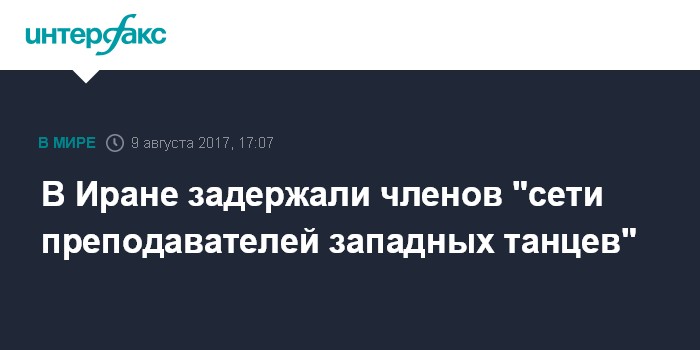 Москва. 9 августа. INTERFAX.RU - Четыре парня и две девушки арестованы в Иране за обучение "западным" и латиноамериканским танцам, сообщил представитель подразделения Корпуса стражей Исламской революции (КСИР).
