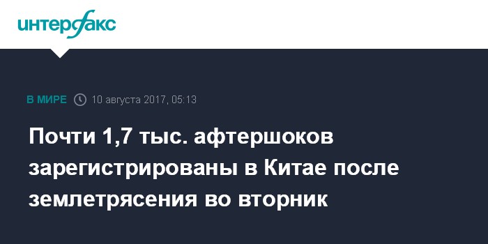 Москва. 10 августа. INTERFAX.RU - В Китайской юго-западной провинции Сычуань после землетрясения во вторник зарегистрировано 1 690 повторных подземных толчков, самый сильный из них - магнитудой 4,8, сообщают местные СМИ со ссылками на сейсмологическую службу страны.