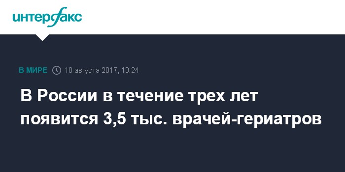 "В соответствии с ними за три года планируется обучить 3 тыс. 500 врачей (гериатров, а также прошедших допподготовку терапевтов и врачей общей практики - ИФ)", - отметили в пресс-службе Голодец.
