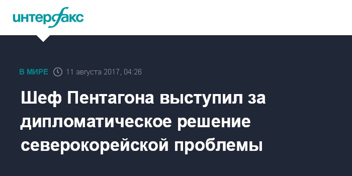 Москва. 11 августа. INTERFAX.RU - Министр обороны США Джеймс Мэттис заявил, что США надеются на решение проблемы Северной Кореи дипломатическими средствами.