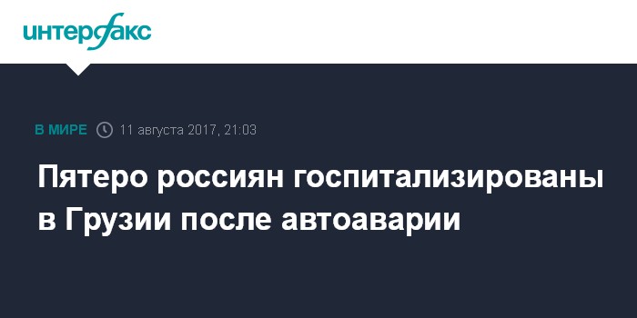 Москва. 11 августа. INTERFAX.RU - В результате дорожно-транспортного происшествия, происшедшего в пятницу на Рикотском перевале Грузии, через который пролегает главная автомагистраль страны "Восток-Запад", пострадали 5 граждан РФ, сообщает Первый канал Общественного вещателя Грузии.
