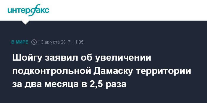 "За последние два месяца освобождена территория большая, чем была под контролем сирийского правительства на момент вхождения туда наших ВКС", - заметил он. "То есть фактически мы сделали ее в 2,5 раза больше была до этого", - сказал Шойгу.