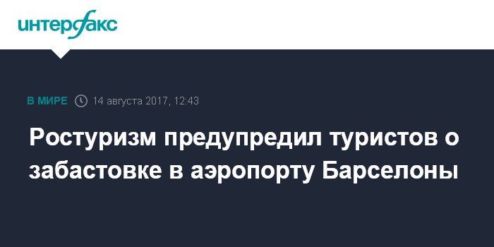 Москва. 14 августа. INTERFAX.RU - Ростуризм рекомендует российским туристам приезжать в аэропорт Барселоны заранее в связи с 24-часовой забастовкой его сотрудников, сообщили "Интерфаксу" в пресс-службе ведомства.