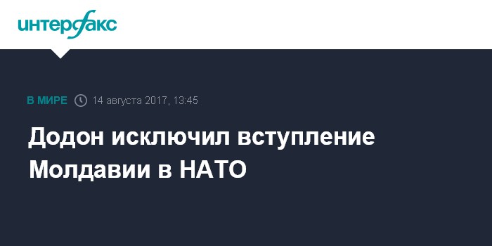 Москва. 14 августа. INTERFAX.RU - Молдавия сохранит нейтралитет и не станет членом НАТО или другого военного блока, заявил президент Молдавии Игорь Додон.