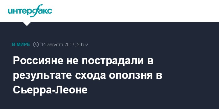 "По информации посольства России в Гвинейской Республике, курирующего по совместительству отношения нашей страны с Республикой Сьерра-Леоне, среди находящихся в Сьерра-Леоне российских граждан пострадавших нет", - говорится в сообщении, опубликованном в понедельник на сайте российского внешнеполитического ведомства.