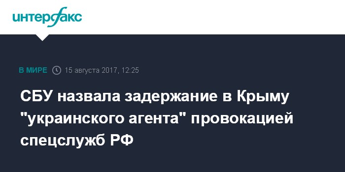 Москва. 15 августа. INTERFAX.RU - Служба безопасности Украины расценила как провокацию информацию ФСБ РФ о задержании в Крыму агента СБУ, готовившего диверсии на полуострове.