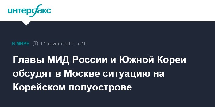 Главы МИД России и Южной Кореи обсудят в Москве ситуацию на Корейском полуострове