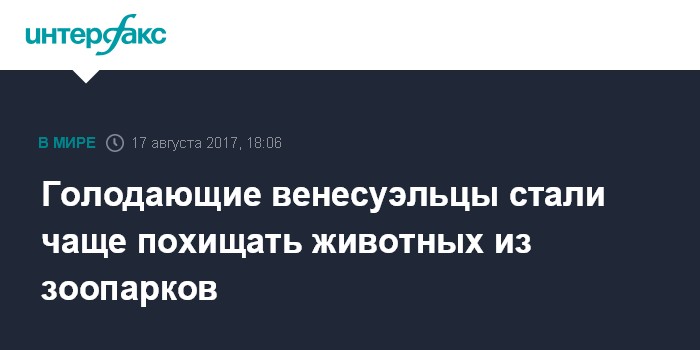 Москва. 17 августа. INTERFAX.RU - В Венесуэле стали чаще похищать животных из зоопарков ради пропитания, сообщает британская газета The Guardian.