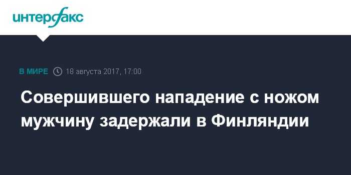 Москва. 18 августа. INTERFAX.RU - Финская полиция задержала мужчину, который, предположительно, напал на нескольких человек с ножом в городе Турку, сообщает "Би-би-си".