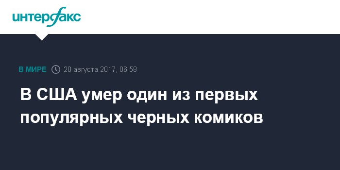 Москва. 20 августа. INTERFAX.RU - Дик Грегори, один из первых американских черных комиков, добившихся успеха у белой аудитории, умер в возрасте 84 лет, сообщил телеканал CNN.