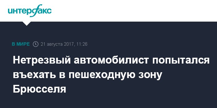 Москва. 21 августа. INTERFAX.RU - Значительные силы полиции были развернуты в понедельник утром в центре Брюсселя в связи с попыткой автомобилиста въехать на пешеходную зону на бульваре Анспаш, сообщил сайт телеканала RTBF.