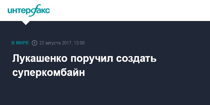 Москва. 22 августа. INTERFAX.RU - Президент Белоруссии Александр Лукашенко поручил создать в стране суперкомбайн, который превосходил бы импортные аналоги.