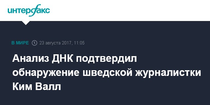Анализ ДНК подтвердил обнаружение шведской журналистки Ким Валл