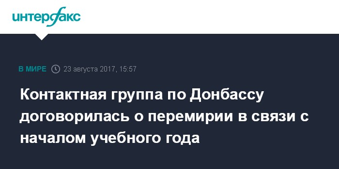 Москва. 23 августа. INTERFAX.RU - Участники контактной группы по Украине согласовали в Минске условия очередного перемирия, приуроченного к началу нового учебного года. Об этом сообщил "Интерфаксу" источник в группе по организации переговоров.