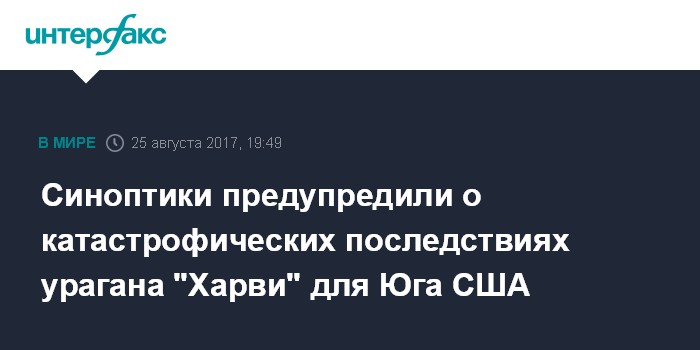 Москва. 25 августа. INTERFAX.RU - Американские метеорологи предупредили, что ураган "Харви" может набрать силу и стать причиной катастрофических потопа в штате Техас, пишет в пятницу USA Today.
