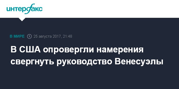 Москва. 25 августа. INTERFAX.RU - Глава Минфина США Стивен Мнучин заявил в пятницу на брифинге в Белом доме, что цель политики Вашингтона в отношении Венесуэлы состоит не в свержении нынешней власти, а в возвращении демократии.