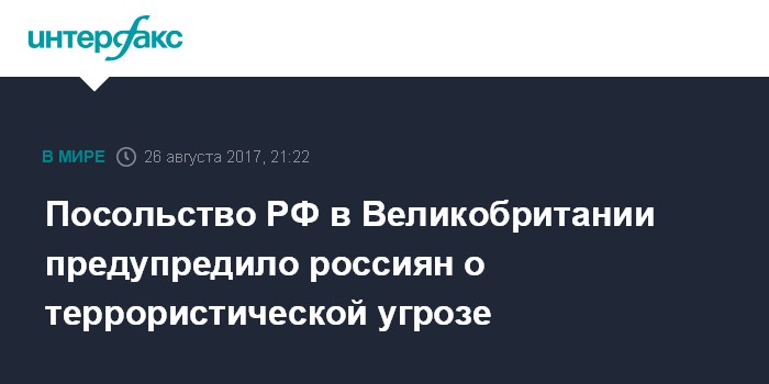 Москва. 26 августа. INTERFAX.RU - Посольство России в Великобритании в субботу повторило предупреждение о террористической угрозе в связи с нападением, произошедшим накануне вечером у Букингемского дворца.