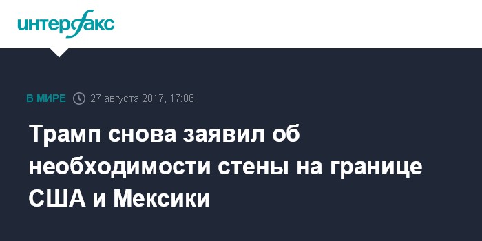 Москва. 27 августа. INTERFAX.RU - Президент США Дональд Трамп в воскресенье вновь высказался за необходимость построения стены на границе с Мексикой.