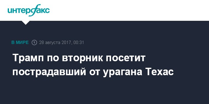 Москва. 28 августа. INTERFAX.RU - Президент США Дональд Трамп планирует посетить пострадавший от урагана Техас во вторник.
