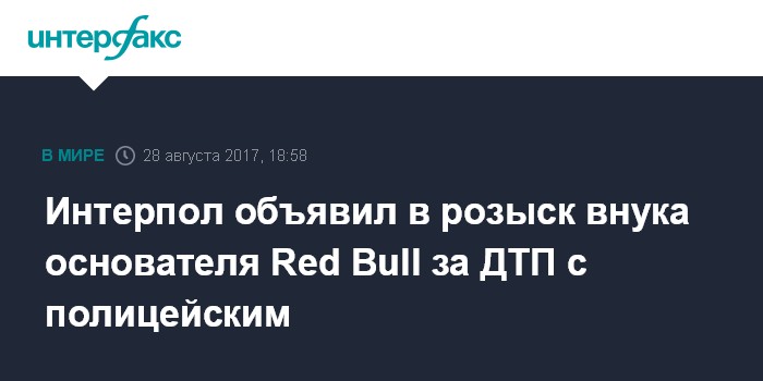 Интерпол объявил в розыск внука основателя Red Bull за ДТП с полицейским