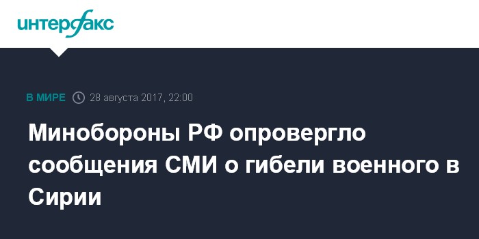 Москва. 28 августа. INTERFAX.RU - В министерстве обороны РФ опровергли сообщения СМИ о гибели в Сирии 11 августа российского военного.