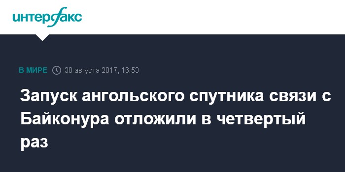 Запуск ангольского спутника связи с Байконура отложили в четвертый раз