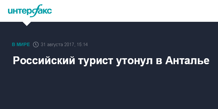 Москва. 31 августа. INTERFAX.RU - Российский турист Николай Белов утонул в водохранилище Оймапинар на курорте Манавгат в турецкой провинции Анталья в среду, сообщает телеканал CNN Turk.