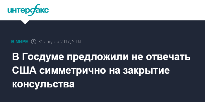 "Требование о закрытии консульства - это архинесправедливый шаг. Это означает, что США объявляют горячую фазу дипломатической войны. Закрытие загранучреждение - это гораздо серьезнее, чем высылка дипломатов или даже незаконная ампутация дипсобственности", - сказал Слуцкий журналистам в четверг. Он обратил внимание на то, что уже было заявлено: Россия будет вынуждена ответить.