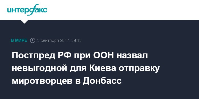 Москва. 2 сентября. INTERFAX.RU - Введение миротворческой миссии ООН в Донбасс не выгодно украинской стороне, считает постоянный представитель РФ при ООН Василий Небензя.