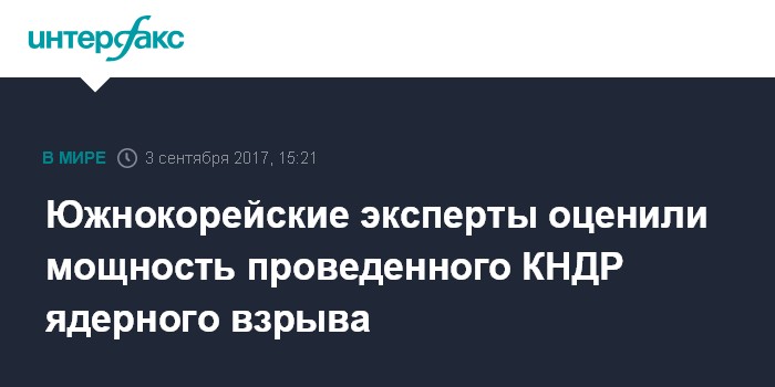 Южнокорейские эксперты оценили мощность проведенного КНДР ядерного взрыва