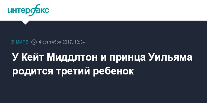 "Их королевское высочество герцог и герцогиня Кембриджские рады объявить, что герцогиня Кембриджская ожидает третьего ребенка", - говорится в распространенном Кенсингтонским дворцом пресс-релизе.