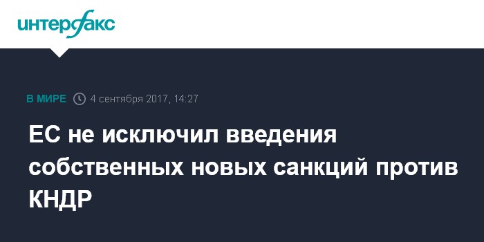 "Европейский союз уже применяет свои собственные чрезвычайно широкие (ограничительные - ИФ) меры (в отношении КНДР - ИФ), и принятие дополнительных мер - это, конечно, вариант, который имеется в распоряжении ЕС, но любые решения принимаются Советом министров", - сказала пресс-секретарь в понедельник на брифинге в Брюсселе.