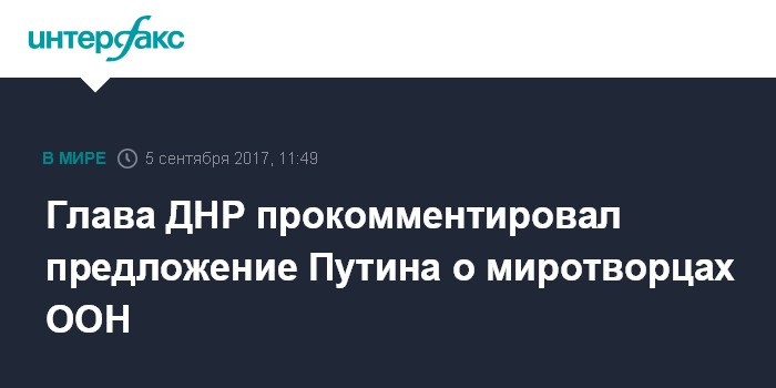 Глава ДНР прокомментировал предложение Путина о миротворцах ООН