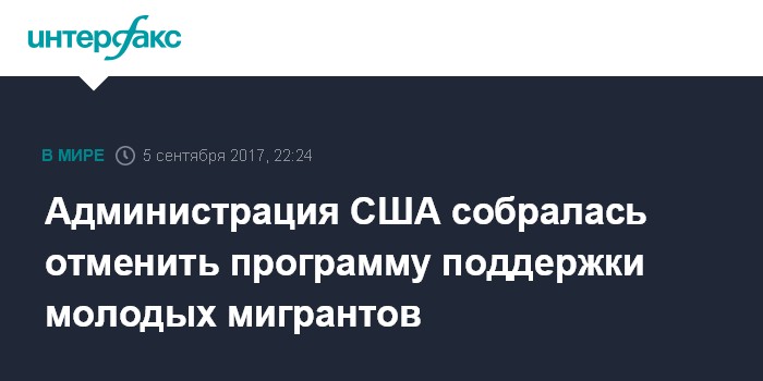 Ранее сообщалось, что администрация США запустила процесс отмены программы DACA. Западные СМИ отмечают, что большинство участников программы DACA - выходцы из Мексики.