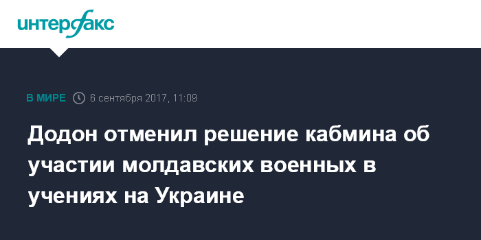 Москва. 6 сентября. INTERFAX.RU - Президент Молдавии Игорь Додон приостановил действие постановления правительства об участии молдавских военнослужащих в военных учениях на Украине.