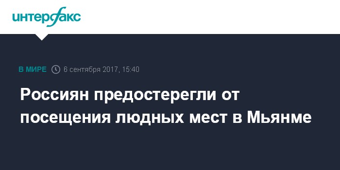 Москва. 6 сентября. INTERFAX.RU - Посольство РФ в Мьянме призвало находящихся в стране россиян проявлять бдительность и избегать многолюдных мест.