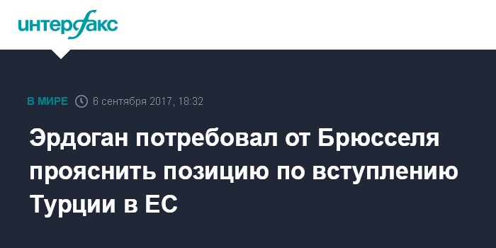 Эрдоган потребовал от Брюсселя прояснить позицию по вступлению Турции в ЕС
