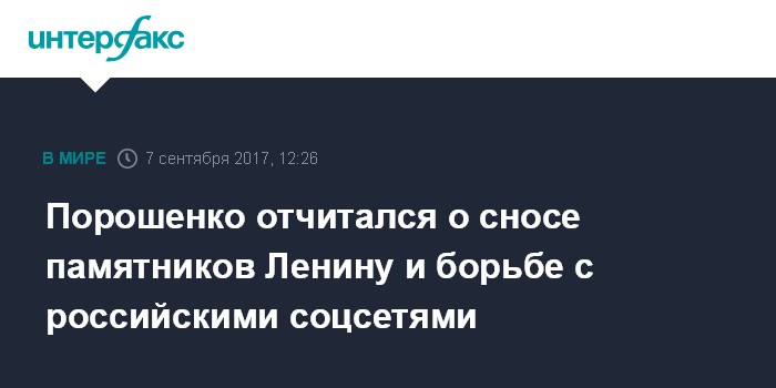 Порошенко отчитался о сносе памятников Ленину и борьбе с российскими соцсетями