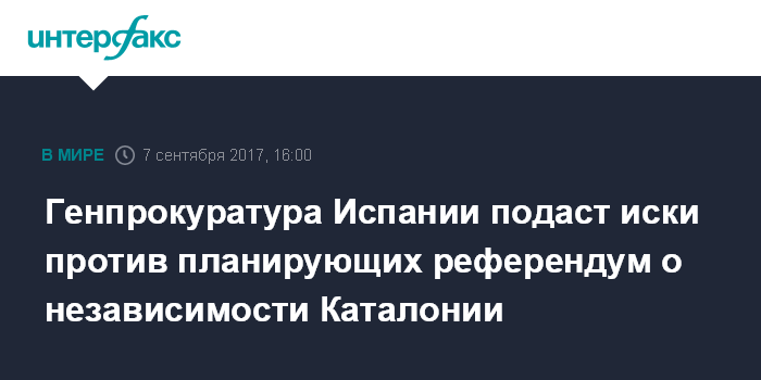 Ранее глава исполнительной власти испанского автономного сообщества Каталония Карлес Пучдемонт назначил референдум о независимости на 1 октября. По его словам, решение о проведении референдума принято в одностороннем порядке после ряда неудачных попыток договориться об организации голосования с центральным правительством в Мадриде.